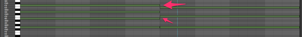 だから解決感が強いわけですね。このピアノロールや手形では、CはCがベースになってないですけど、アンサンブルではベースが弾いてるわけですから、4度進行と考えてください。