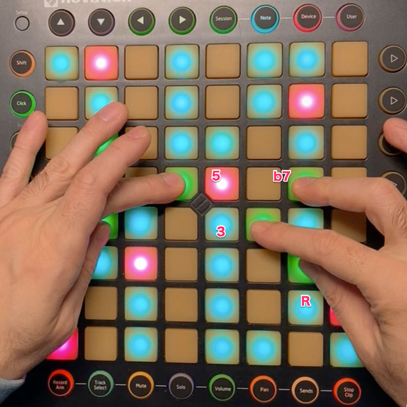 | ローマ数字表記 | Ⅰ△7 | Ⅱm7 | Ⅲm7 | Ⅳ△7 | Ⅴ7 | Ⅵm7 | Ⅶm(b5) |