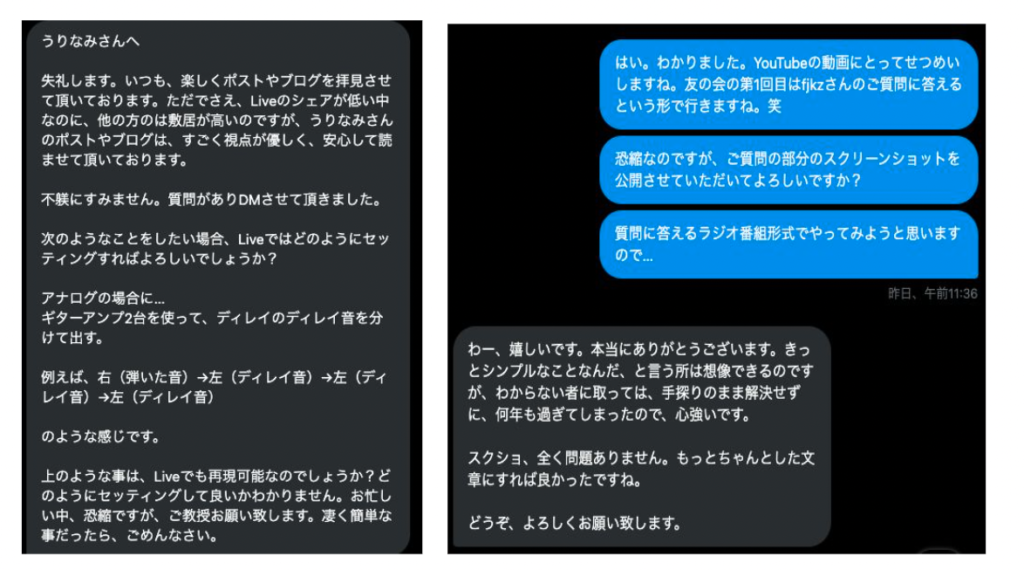 ちょっと返信は遅れるかもしれません。出来れば窓口は一つにしたいんですが、SNSされない方もいらっしゃると思うので… - 基本的にTwitterでDM頂いた質問を次回以降の内容にしますが、友の会のライブ配信中に頂いたやりたいことからテーマも拾うこともありにします。