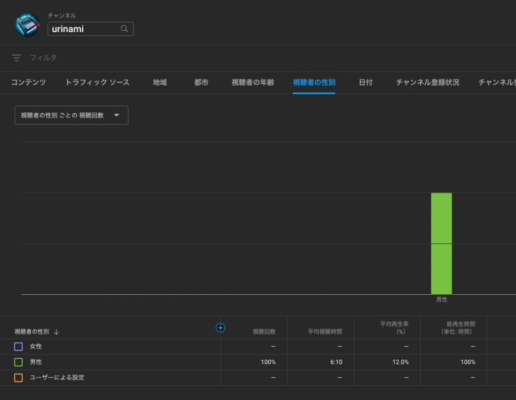 YouTubeみると、YouTubeチャンネルの視聴者は100%男性である…
