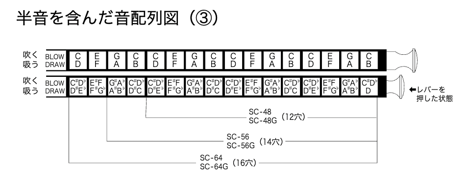 1オクターブの配列の繰り返しなので覚えることはそれほど難しくはなさそうである。