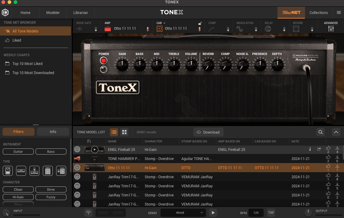 TONEXアプリで立ち上げ、TONE.NETにつなげると、30,481件のTone Modelが見られます。