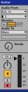 Offはどういう場合に使うかというと、Ableton上でモニターしない場合に使います。ギターを例にしましょうか。ハードのアンプシミュレーターを使って、ミキサーなどでモニターしたい場合なんかはoffにすればいいですね。