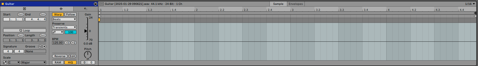 BPMが揺れているようなものに合わせる時に使うのが一般的だと思いますが、今回は、空のオーディオクリップにBPMを設定します。そうするとMIDIなどの打ち込みも問題なくritさせられます。