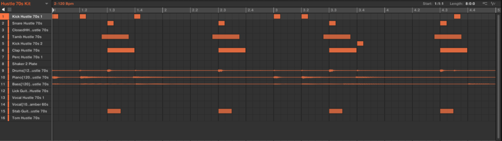まず、Groupにドラムキットを立ち上げて、パターンを入力します。
