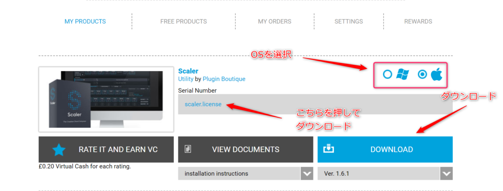 Scaler.licenseはわかりやすい場所にダウンロードしておいてください。あとで認証の時に使います。私はデスクトップに保存しました。