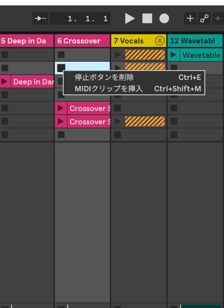 セッションビューの停止ボタンを削除すると、再生が楽になるのと、クリップの選択が容易になる。