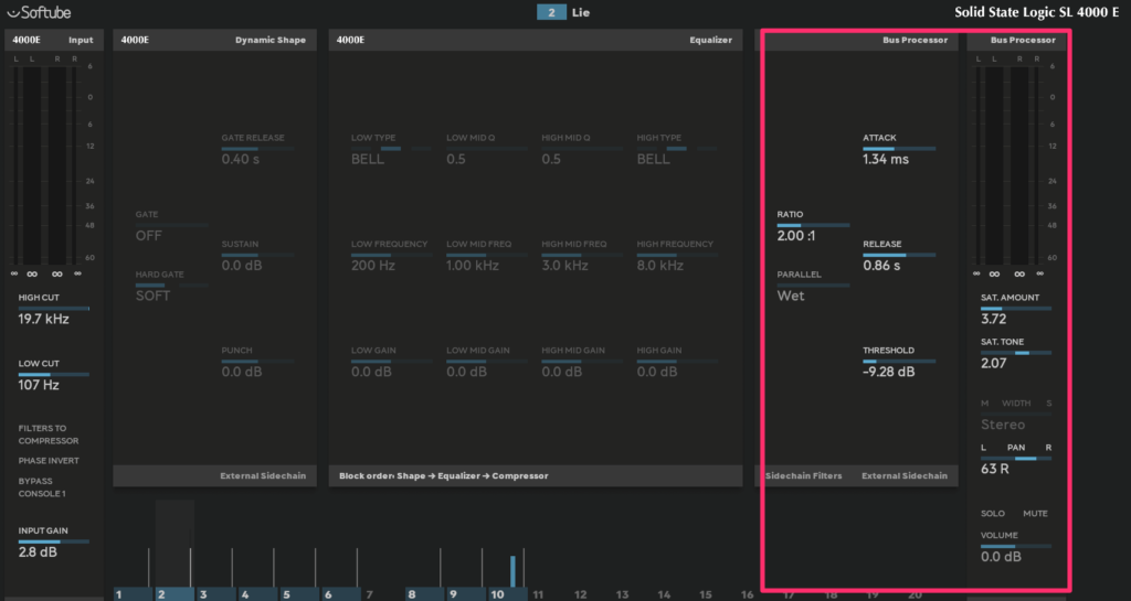 当然今までのSSLのGluecompと呼ばれるバスコンプのようにトラックを強力になじませることも出来ますが、出来ることはそれだけではなかった。