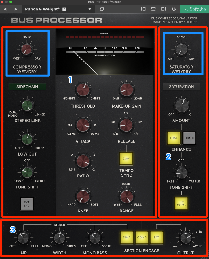 使う前はバスコンプレッサーではなくて、なんでBus Processorという名前なのかなと思ったんですけど、使って納得しました。
