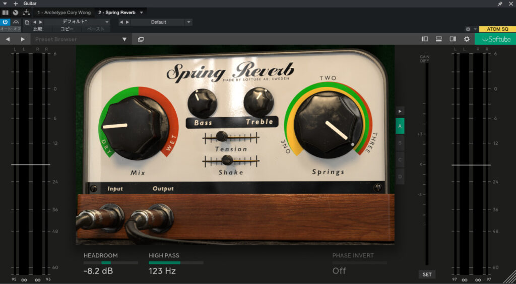 リバーブはついてるんですが、スプリング・リバーブではない。どうしたらいい、絶望や!となっていたんですが、SoftubeからSpring Reverbが出たので試してみたら最高でした…しかも軽いです。