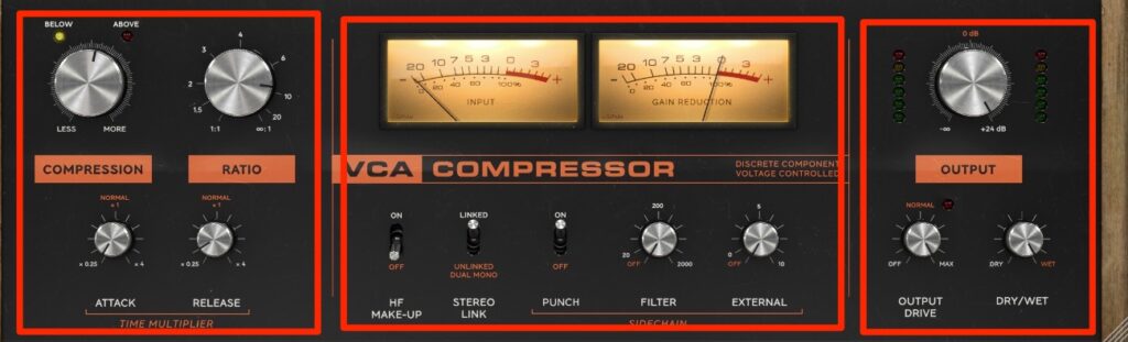 VCA Compressorは3つのセクションに分かれています。わかりやすい…