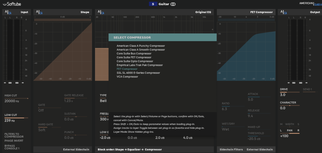 見た目からしてわかりやすそうですね。Softubeの場合は実機とは違うデザインですが非常にわかりやすい。