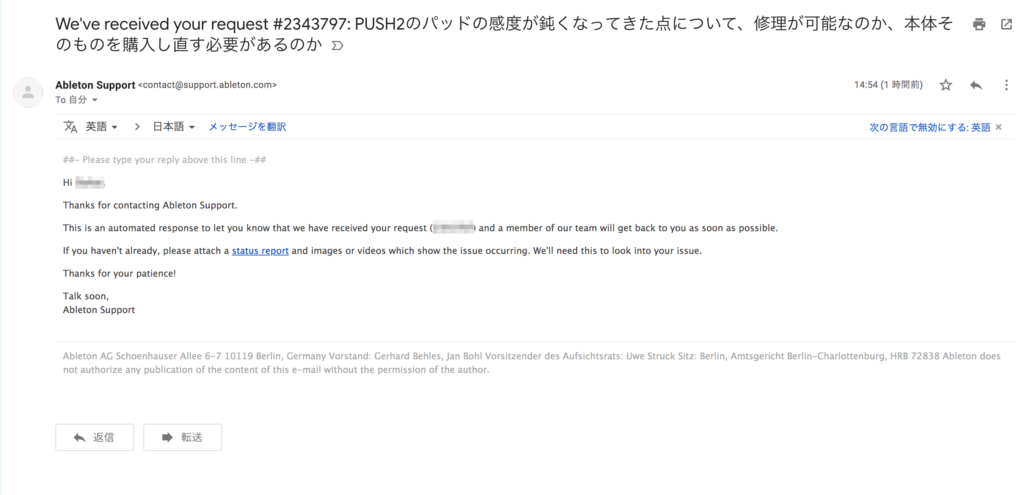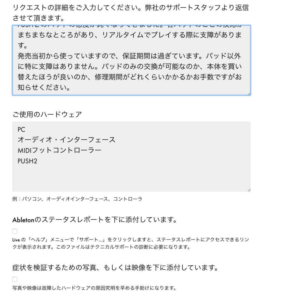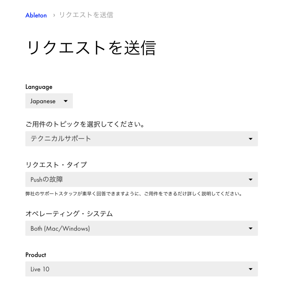 @AbletonJPのRさんに問い合わせのリンクを教えてもらったよ。Rさん、いつもお世話になります…