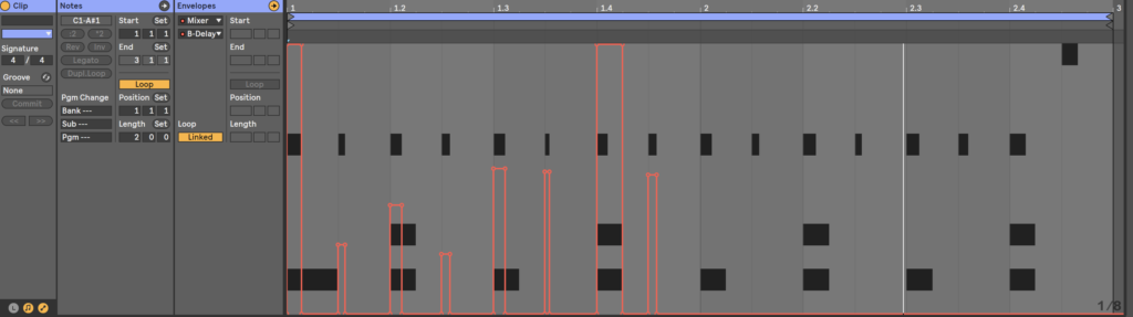 - Clipキーを押して、オートメーションを掛けたいステップを長押しする。