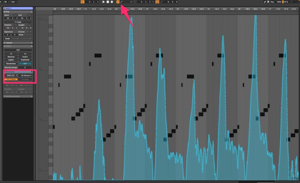 AbletonでMIDIデータなどベタうちしてからTouchéを使いたい場合はMIDIオーバーダブスイッチを押して録音してください。そして、Abletonの仕様なのですが、MIDI CCはクリップに記録されるのでアレンジメントには記録されていません。こちら注意ですね…