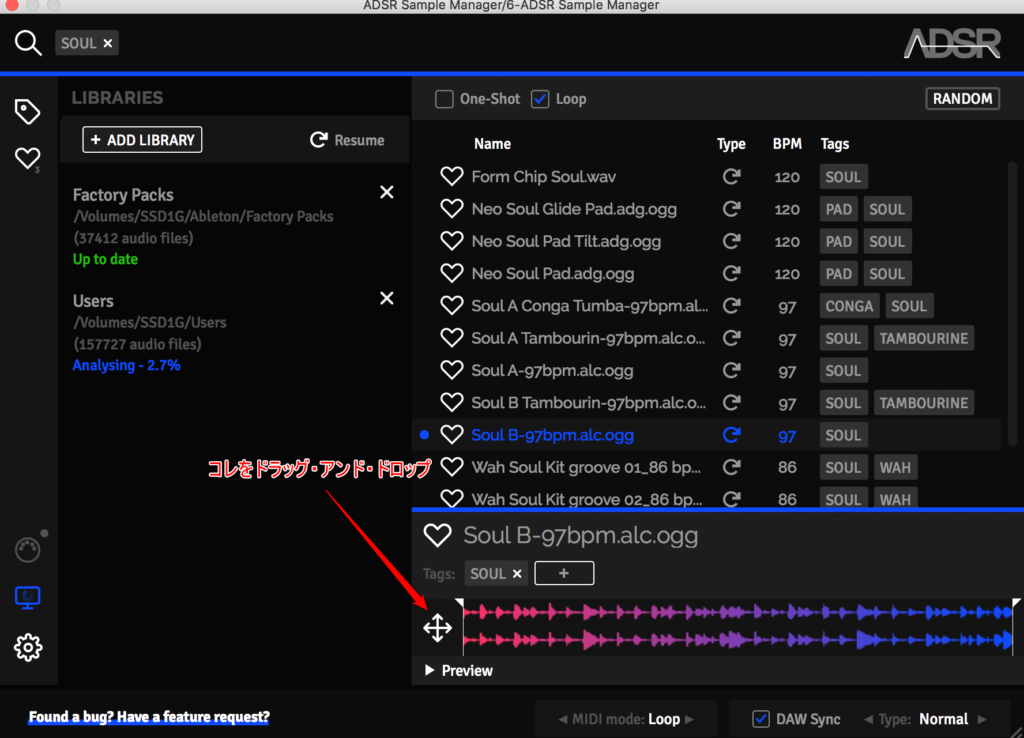 Sample Managerならフォルダを追加しさえすれば、一元管理できて超便利。そこからsimplerにドラッグ・アンド・ドロップすることをおすすめする。