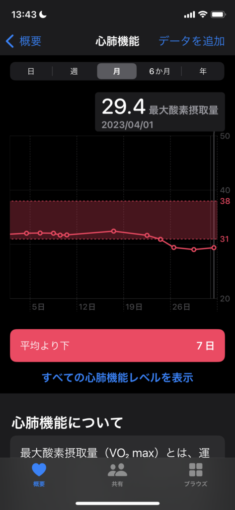 VO2MAXも一時は32を超えるところまで行っていたのですが、また30を割り込んでしまいました。トレーニングは死ぬまでしないとダメということが改めてわかったのが収穫ですね…