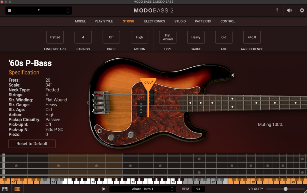 またミュート、死んだ弦のシミュレートなどが出来る。サンプル音源のほうが音としては存在感があるが、奏法の再現度は圧倒的に高いため。