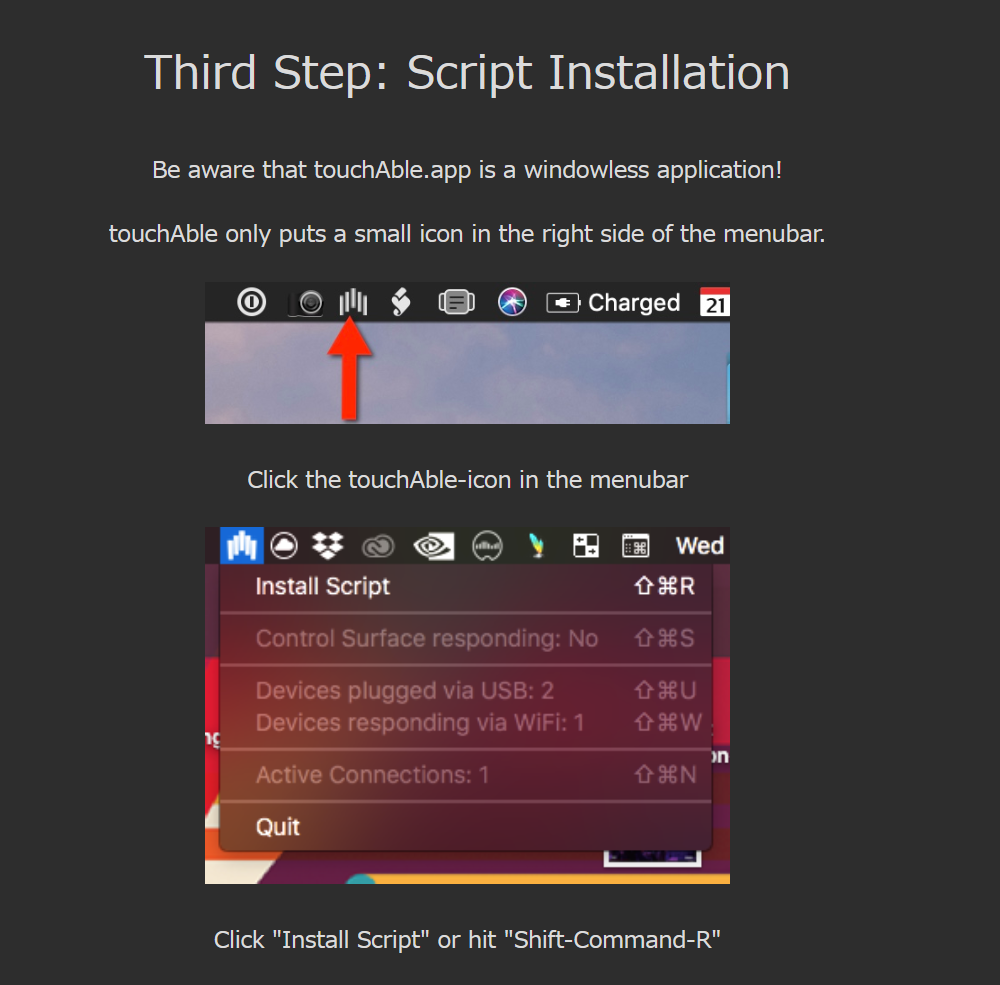 APPSTOREでTouchable Proをダウンロードしたら、公式サイトに行きます。ここに書いてあるとおりにやればできます。