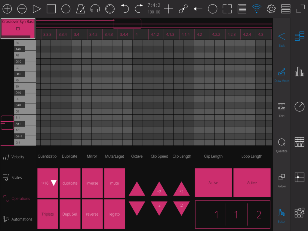 かなり解像度高く描けているのがおわかりいただけるのではないかと。動画で説明しましたけど、長押しでEDITにはいってからEditor,Automationでできます。Device,ParamaterはAbleton Liveに準じてます。