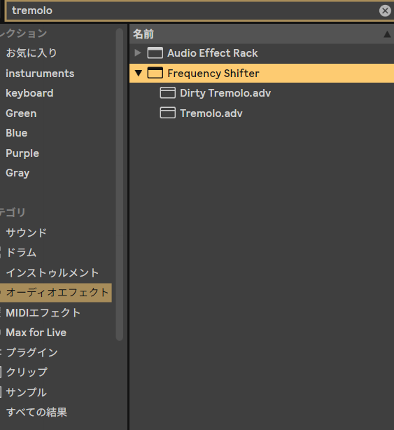 Frequency ShifterからDirty TremoloとTremoloというプリセットがある。こっちはintroでもつかえるから、トレモロ使いたい人はこっち使ってみてね。