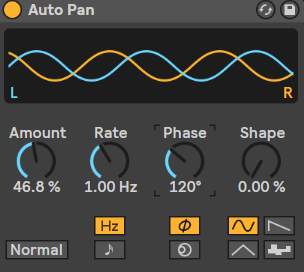 オートパンって右行ったり左行ったりするエフェクトのことやよね。なんで、右行ったり左行ったりするってわかるかって言ったら、音量が変化するからよね。右の音が小さくなって、左の音が大きくなるからや。