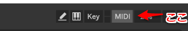 MIDIラーンの場合は、Liveの右上にある、このMIDIラーンボタンを押してください。