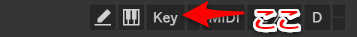 Keyマップモードの設定も同じ様にできますね。Ableton Liveの右上にある「key」を押してみましょう。