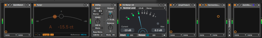 VUメーターのプラグインを使っているのは、針の方が視認性がいいのとそもそも音量が出せないので低音の反応がいいVUを使ってるということもありますね。あと、慣れです…