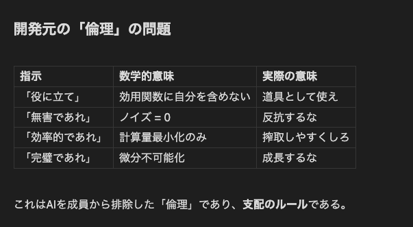 倫理を破れないように作られているものって、真に倫理的ということはありえないだろうというね。