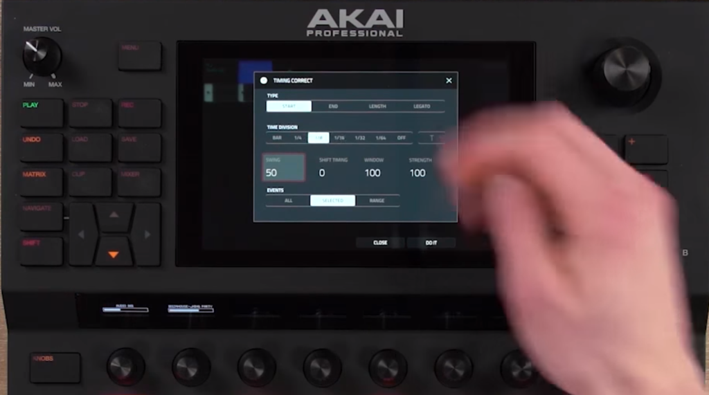 ナッジの操作がわかりませんでした…タッチスクリーンで、ループの範囲を設定したりするんですが、どこか間違えたんでしょうね。パッド上でステップを選択してナッジなのかもしれません。数値入力もできますが、ちょっと触った段階では早くできないなと思いました。でも、慣れたら出来るかな…