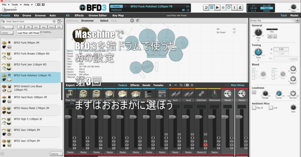 MaschineでBFD3を指ドラムで使うための設定 第3回 まずはおおまかに選ぼう