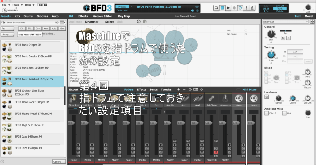 MaschineでBFD3を指ドラムで使うための設定 第4回 指ドラムで注意しておきたい設定項目