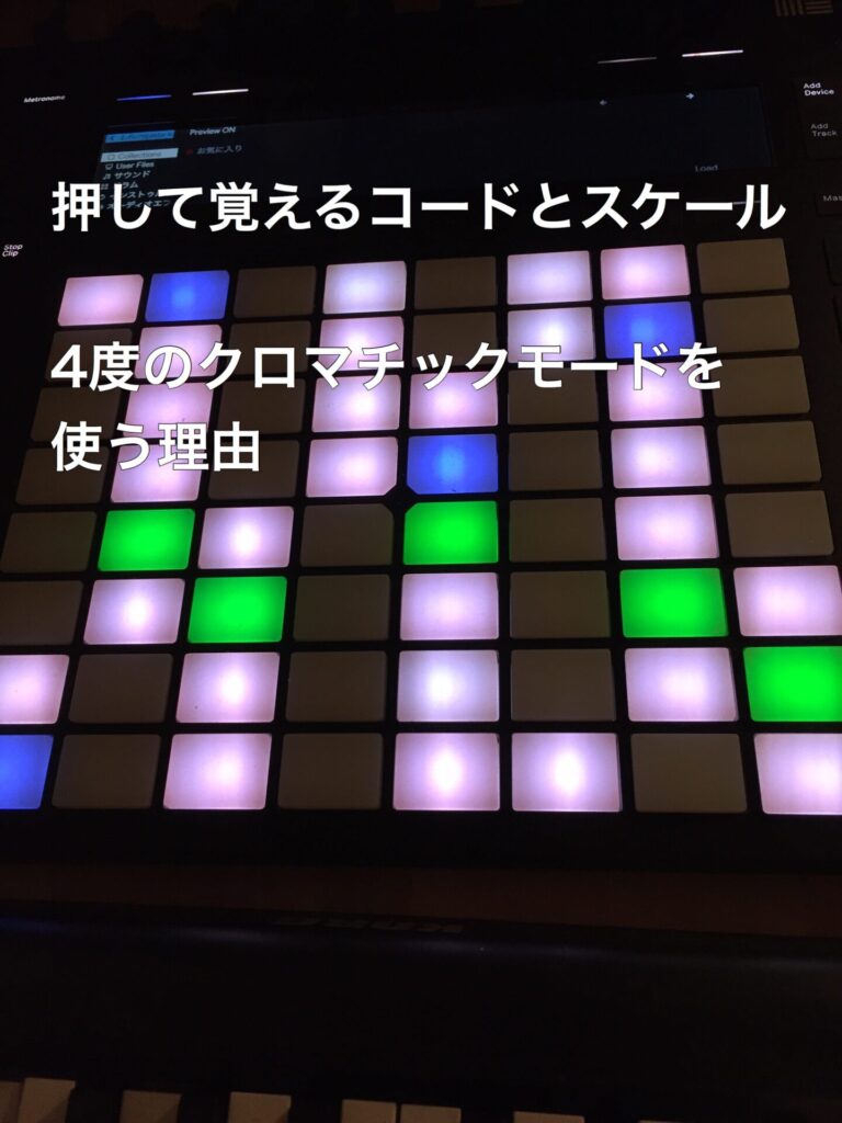押して覚えるコードとスケール 4度のクロマチックモードを使う理由 これ、一番PUSHで面白いと思うんやけど、意外に使ってる人いないんだよね。 JNTHN STEINさん(@JNTHNSTEIN)や、日本だと瀬戸さん(@eguri89 )が4度配列のクロマチックモードで演... -