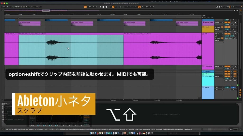 スクラブというあまり知られてない機能があります。FLユーザーは使いまくってる印象がありますね。 https://youtu.be/yJeiHx4UKaQ こういうやつですね。クリップ内部を前後に動かせます。 option+shiftでクリップ内部を前後できます。 Cmd+optiion+Shiftで... -