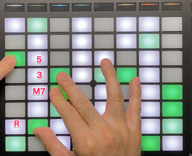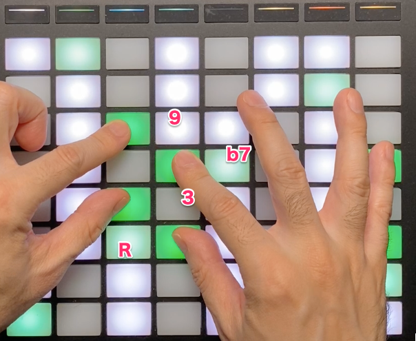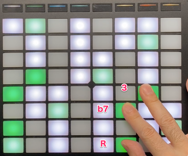 R73のタイプのボイシングは低音域でバッキングする時に、ローインターバルリミット違反になりにくい。ギターを弾く方だと6弦ルート5弦弾かないタイプがこのように押さえるとわかるとパッドも楽しめるのではないでしょうか…