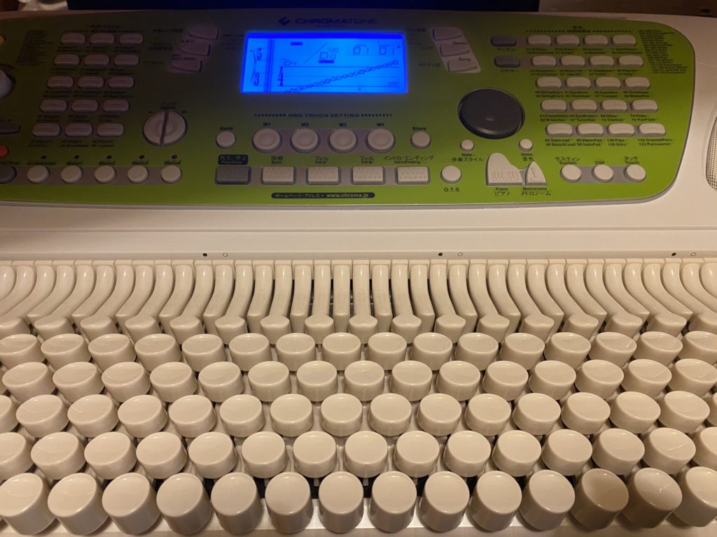 このPCのキーボードのようなちょっと謎の楽器。クロマトーンといいます。