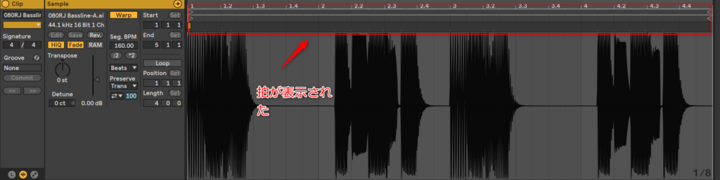 ね、拍が表示されたよね。つまり、WARPを使えば、どんなテンポのファイルであっても、共通して扱えるってことだよね。
