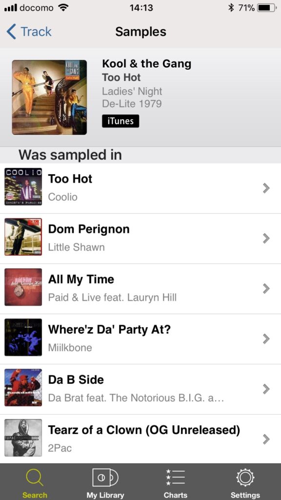 で、甥っ子が勧めるのはWhoSampledです。アプリになってたんですね…。普段PCに向かっていると感度が低いですね…。