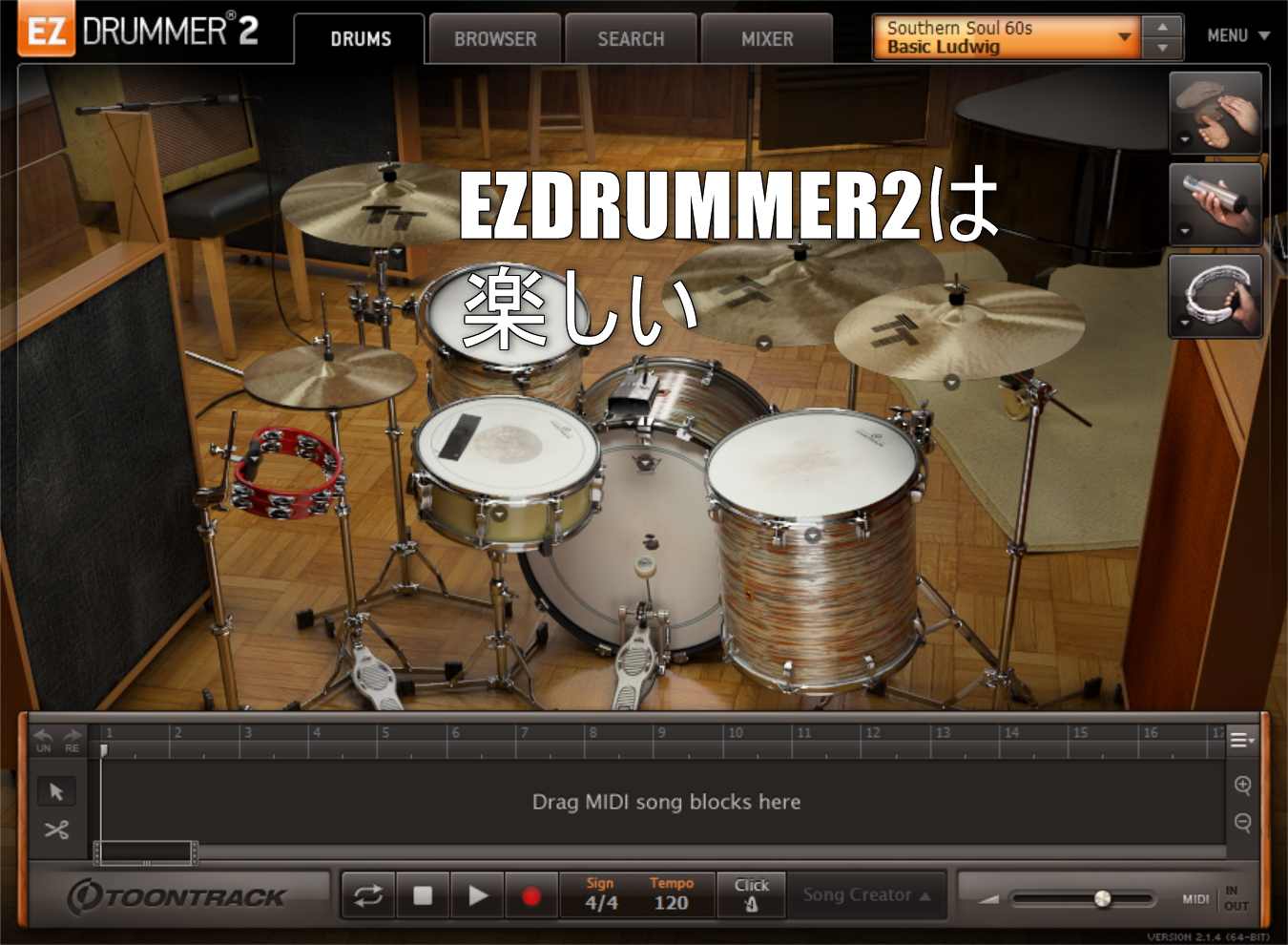 自分、BFD3もAddictive Drums2も持ってるけど自分で好きなもの作るときや練習するときはEzdrummer2を使うことは多い。