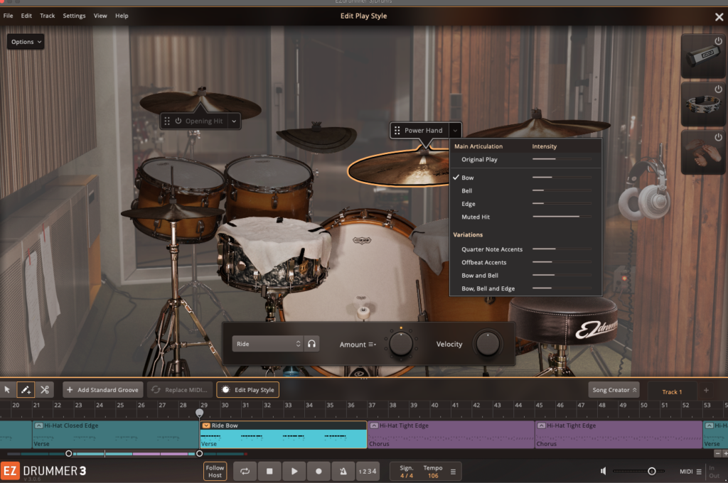 オーディオまたはMIDIファイルをEZdrummer 3にもっていくことで、曲に合わせたドラムパートを自動的に作成します。
