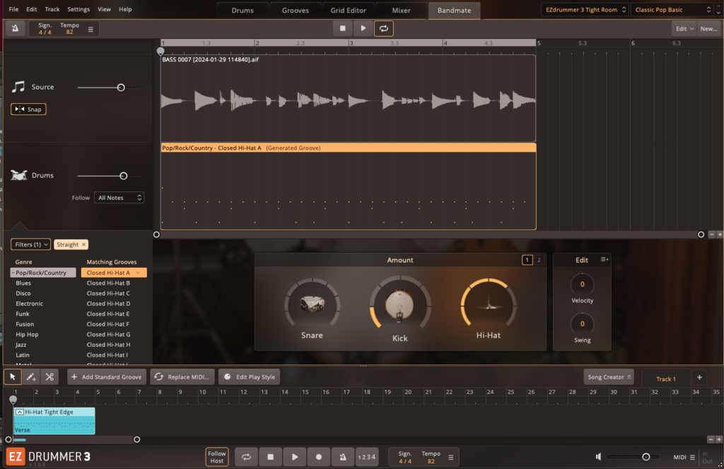 このBandmate機能、今回はベースでやってみましたが、他の楽器でも出来ます。恐ろしいのが、リフなんかと合わせたものもパターンで考えてくれます。
