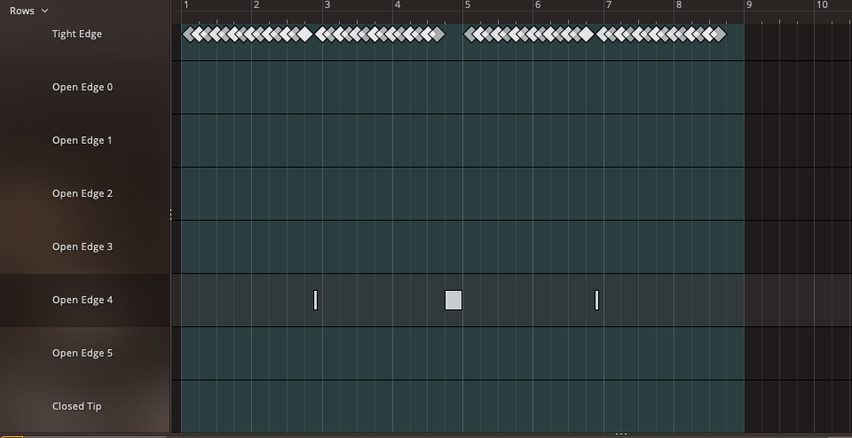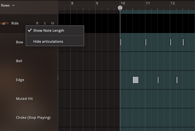 オープンが長いとリズムを考えるときには見にくいが、Notelengthをオフにすればパターンの視認性はあがる。クラッシュなどをチョークするタイミングなどを確認するのにも便利。