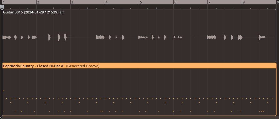 ファンクでありそうな、シングルノートの8小節のパターンを読み込ませてみました。今度はギターで試してみました。