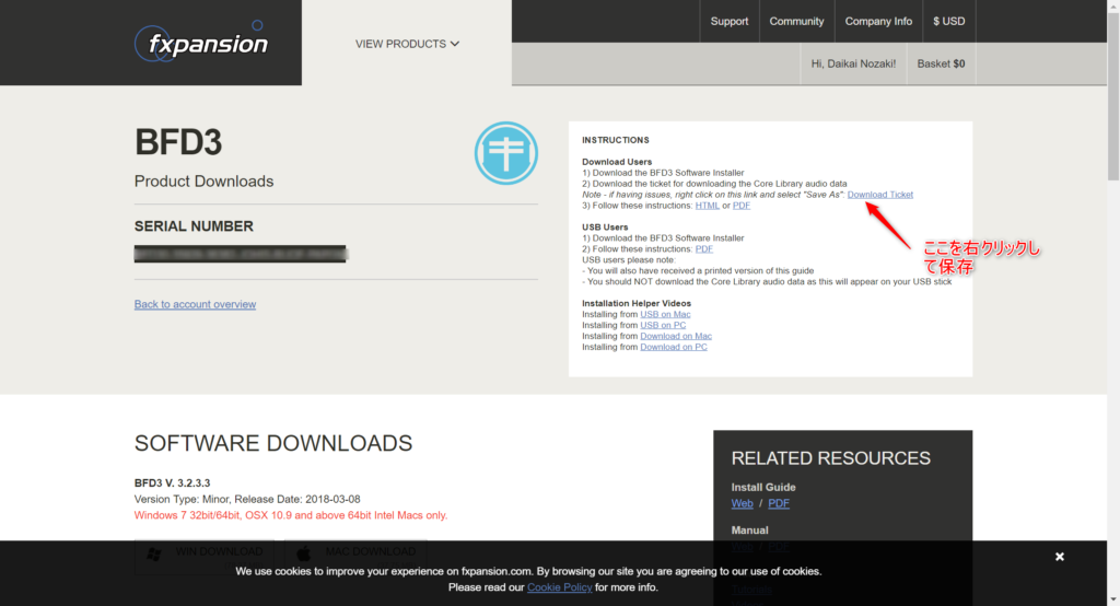 DownLoadTicketを右クリックして保存です。別にUSBメディア持っている人でも使えますからね。もしかしたら盲点かもしれないですから書いておきました。