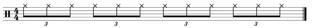 これは基本パルスを3で分割することによって作られる全てのリズム。言い換えると、3連符に基づいたリズムである。