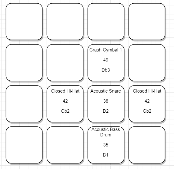 いままで説明したレイアウトのノートナンバーを参考にして打ち込んでくれ。Garagebandなら基本的に音が出せるからね。