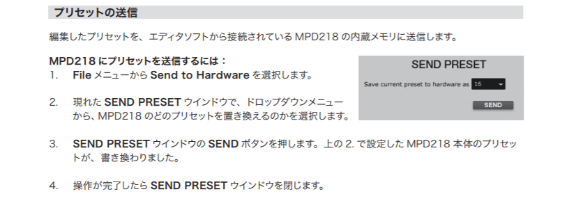 MPD218本体のプリセットを読み込む