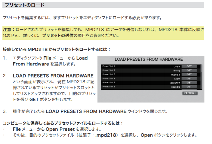 これ、Saveってやっても、MPD218にはデータ送られないからね。MPD218Editorで作った、レイアウトのデータがPCにセーブされるという意味だから。