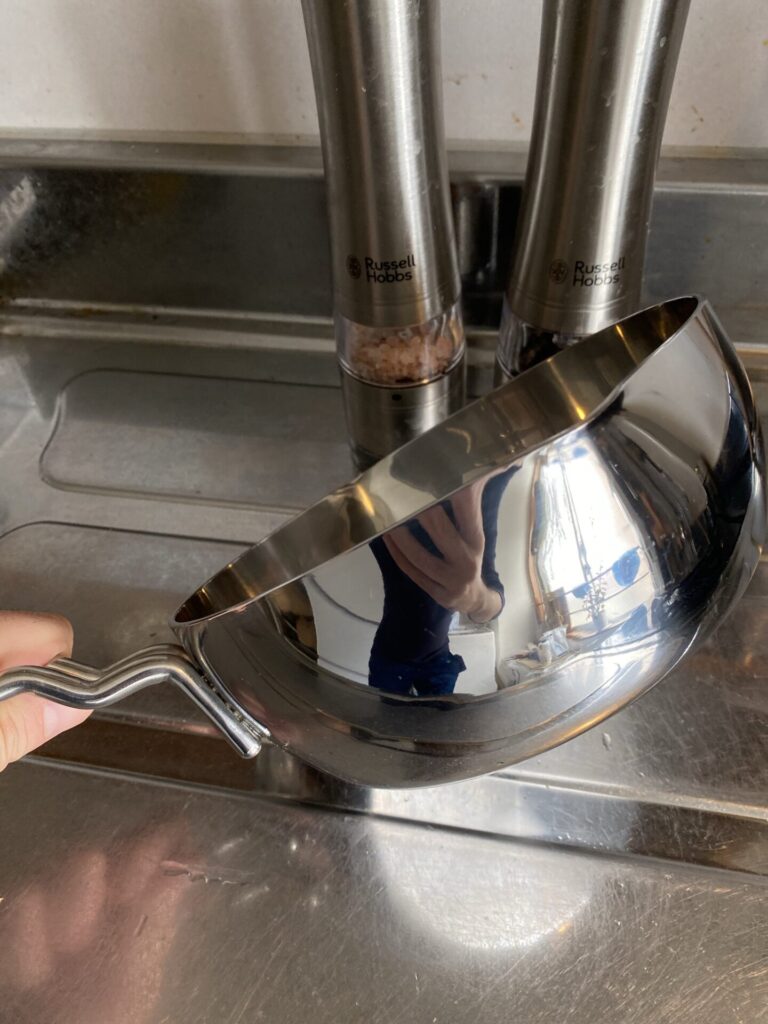ただ、小さな汚れはゼロには出来ないと思います。長時間加熱するんだから、それはどんな鍋でも仕方ない。鉄のフライパンみたいに金たわしで洗うのかと思っていたら、違うんですね。クレンザーであらって良いんだそうです。